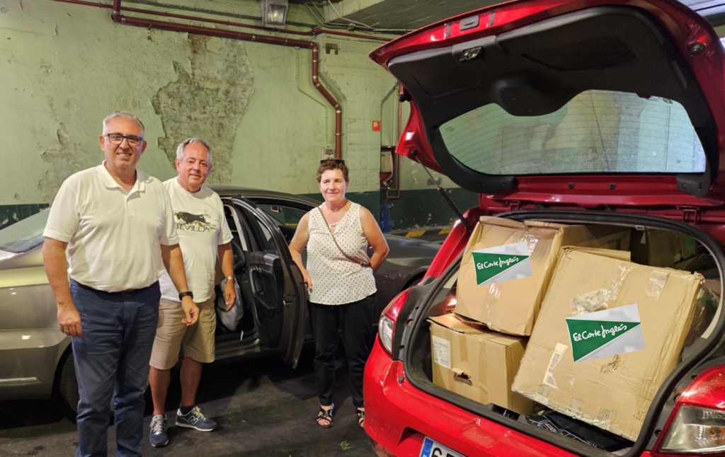 Toda esto ha sido posible gracias a la labor realizada por nuestro vocal de la Junta Directiva, Isidoro Alamillos, que desde hace varios meses ha venido llevando a cabo la negociación directamente con las personas responsables de Relaciones Externas de El Corte Inglés, y al que desde aquí agradecemos el esfuerzo y el éxito. También a su mujer, Puri, y a Antonio Mejías, Secretario de la Asociación, que lo han acompañado en el día de hoy en esta recogida.